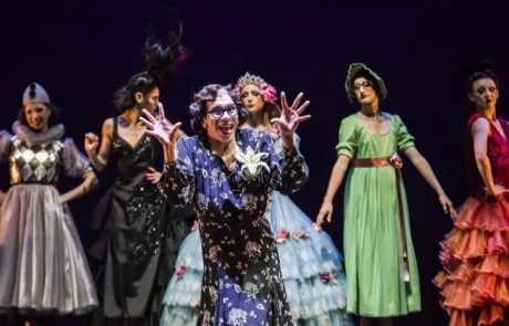 “Pobre Nélida Fernández de Massa…”, dice en una de las escenas en los comienzos de la obra, mientras que se ven a una mujer, Nélida, y dos hombres adultos con máscaras blancas, sus dos niños, “nadie me trata como trapo”, en seguida dos mujeres, interpretadas por hombres, con vestidos floreados bailan con pasos de clásico marcados, bailan mientras que se ponen en fila y todos se miran y bailan el vals. Nene es la reina de la primavera y se destaca con su vestido de miriñaque, la juventud y la flor de la vida.